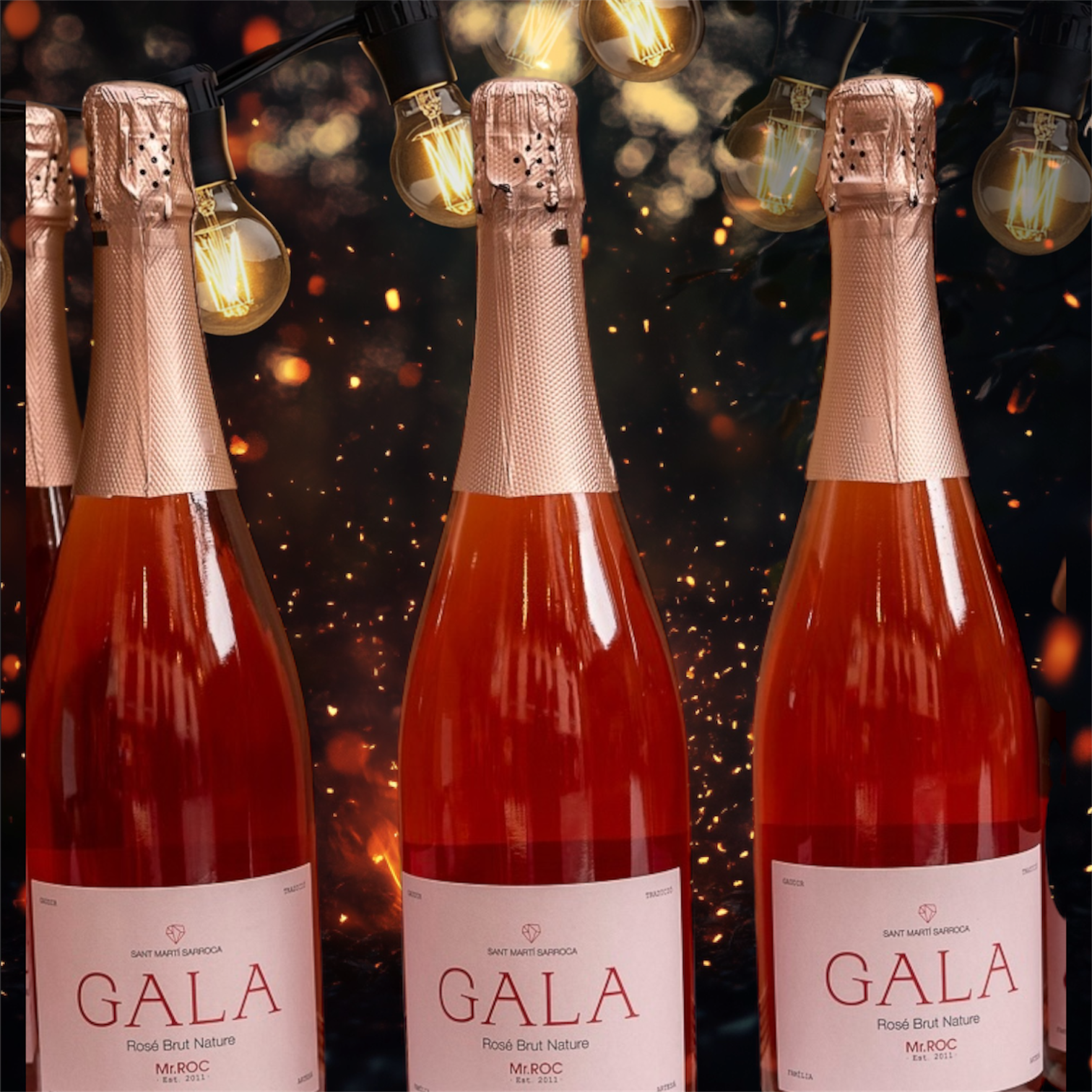 GALA és la joia més jove de Mr. ROC. Neix de la Garnatxa Negra i el Pinot Noir, una combinació que aporta força, elegància i un perfil aromàtic fresc. Cada bombolla celebra la terra, la família i la bellesa que creix amb amor.